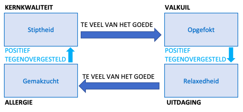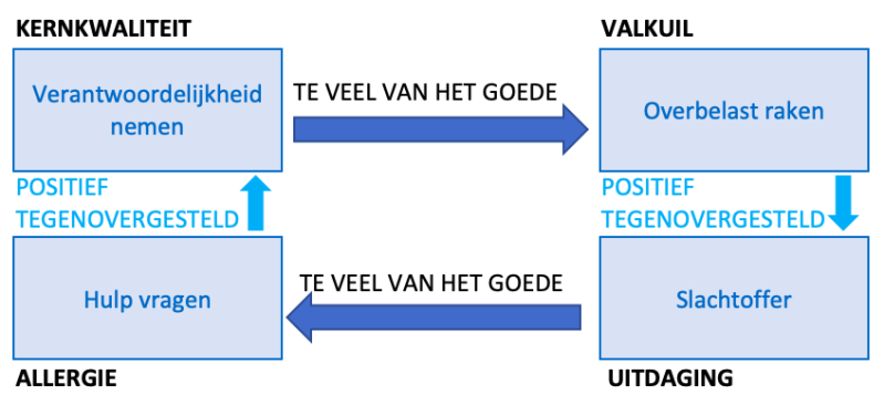 Volgens Daniel Offman is elk individu uniek, dit wordt uitgedrukt in kernkwaliteiten. Maar elke kernkwaliteit kan ook een negatief punt hebben, dit krijgt de naam valkuil. Om aan dit negatief punt te kunnen werken, heb je een uitdaging nodig. Maar je mag niet teveel de uitdaging aan gaan of je valt in je allergie. Ik heb deze 4 punten op mijzelf toegepast.