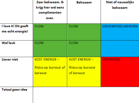 In de talentenmatrix-oefening moesten we 66 talenten onderverdelen.